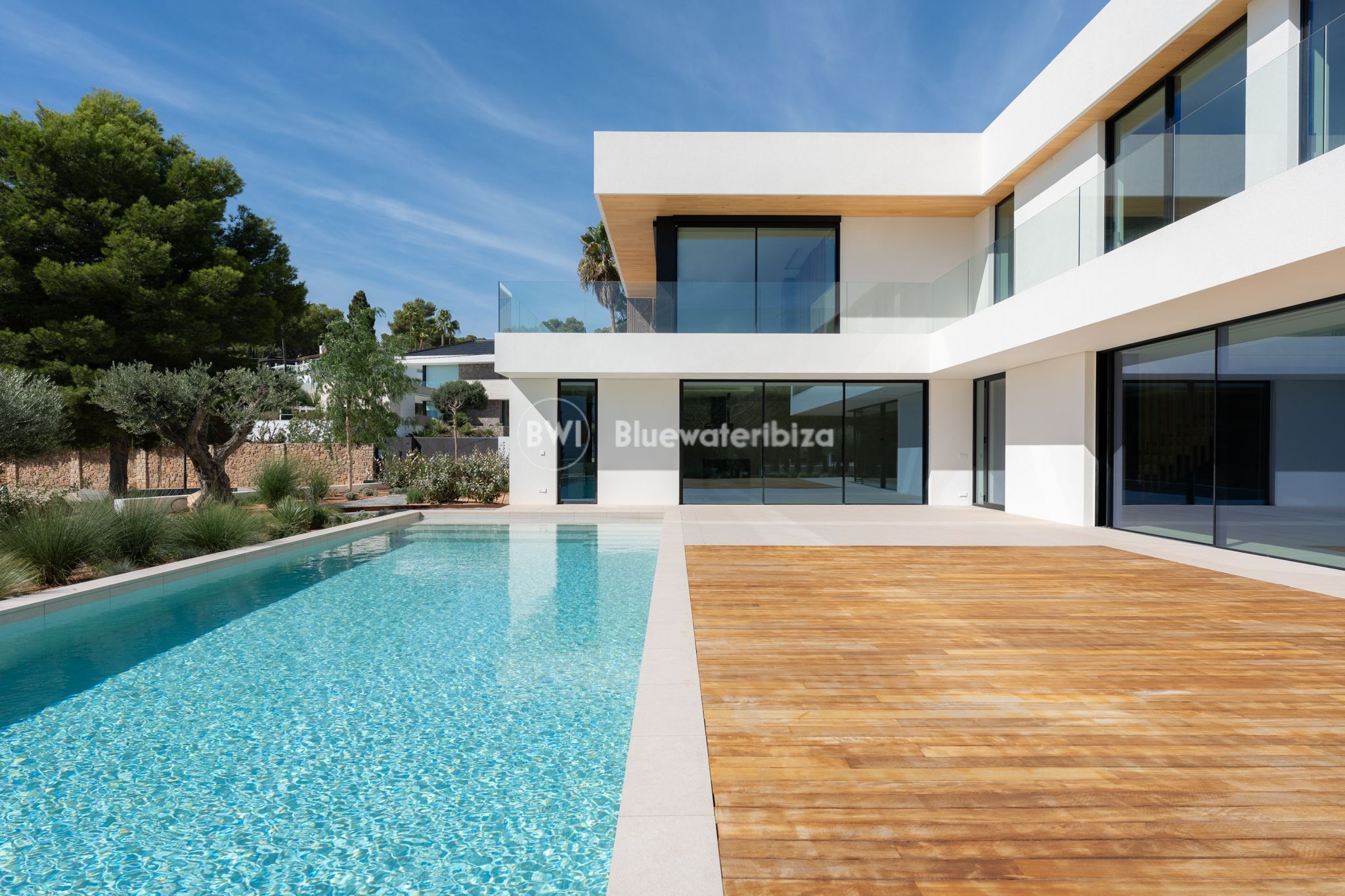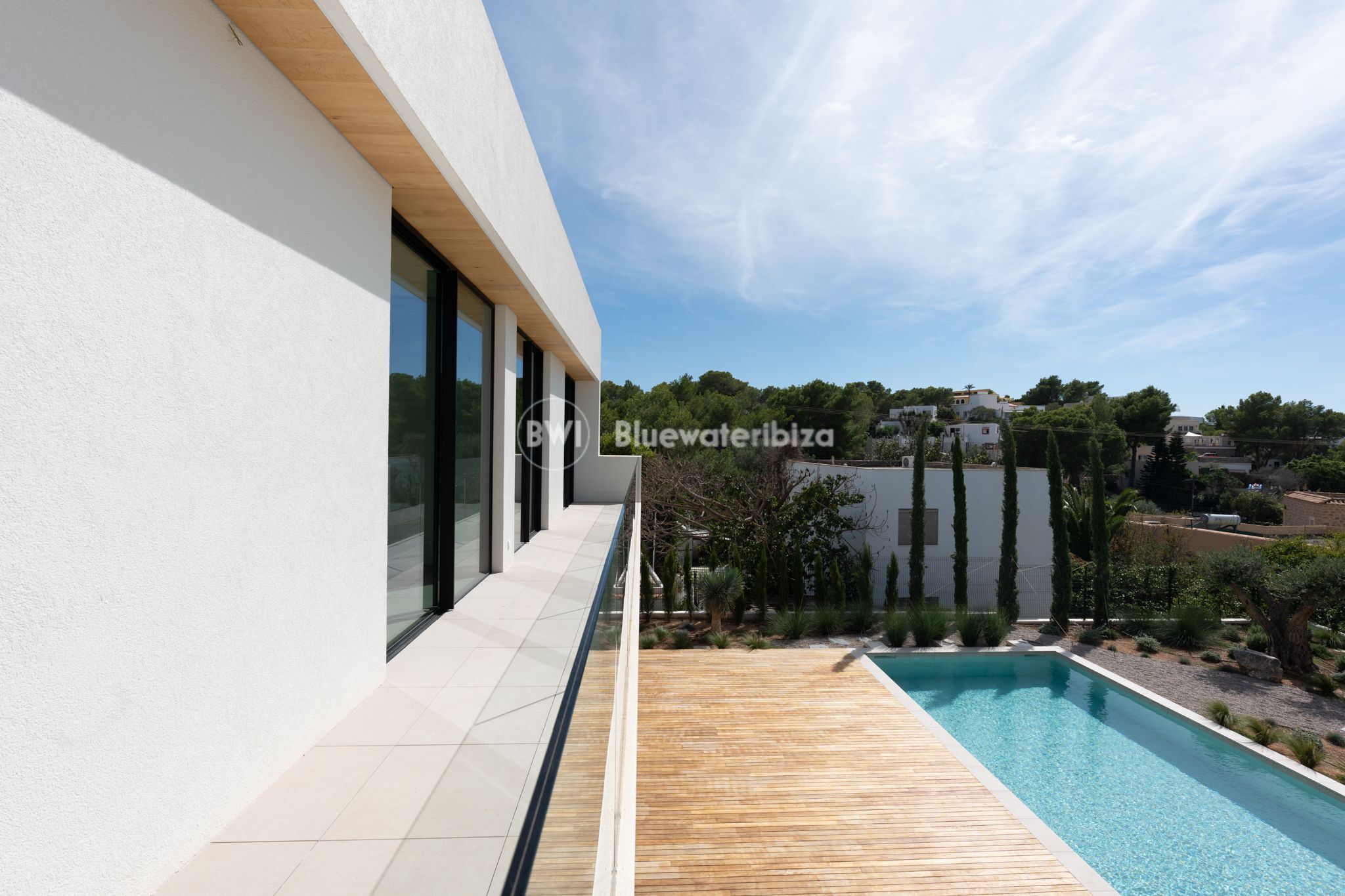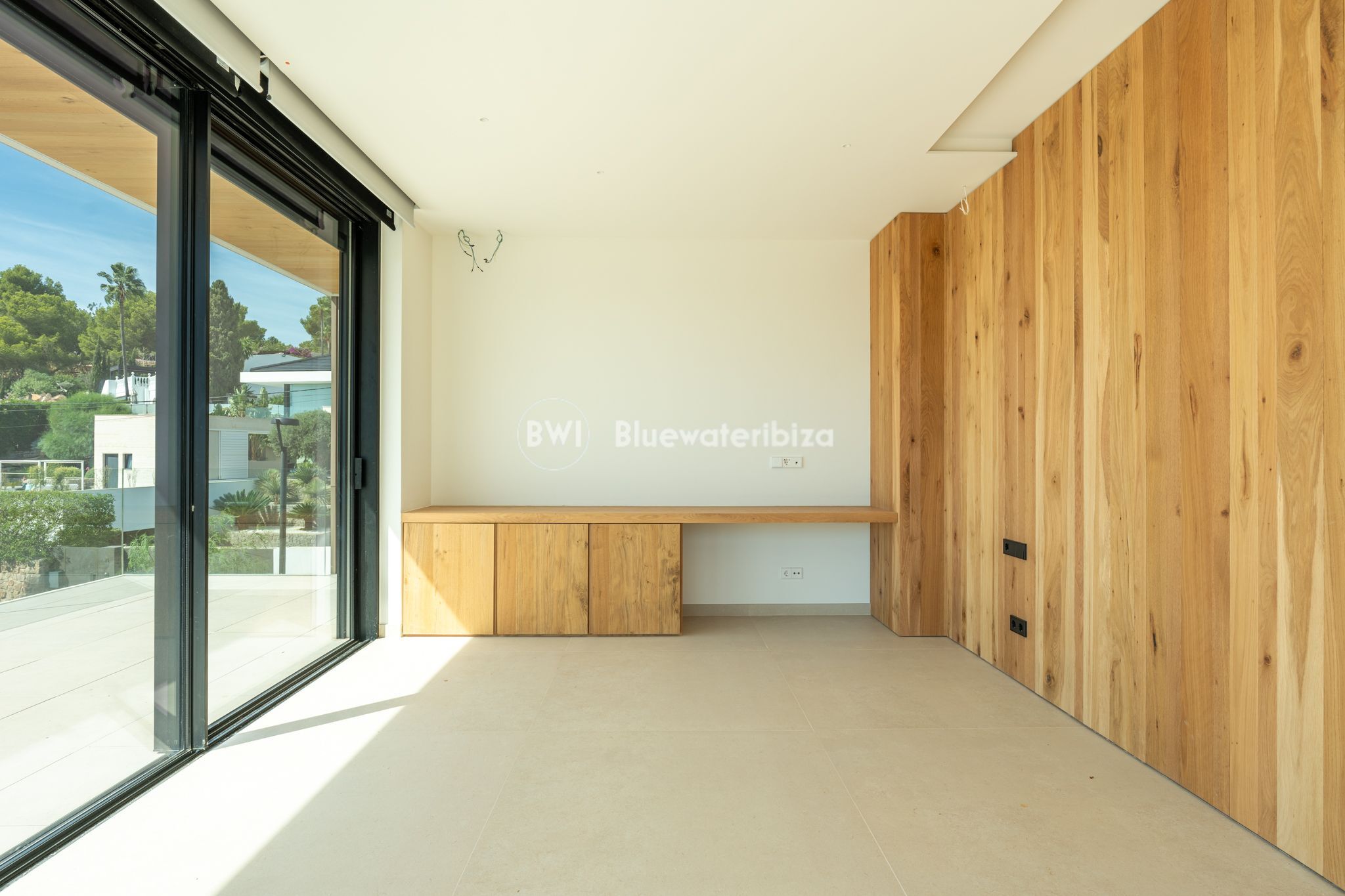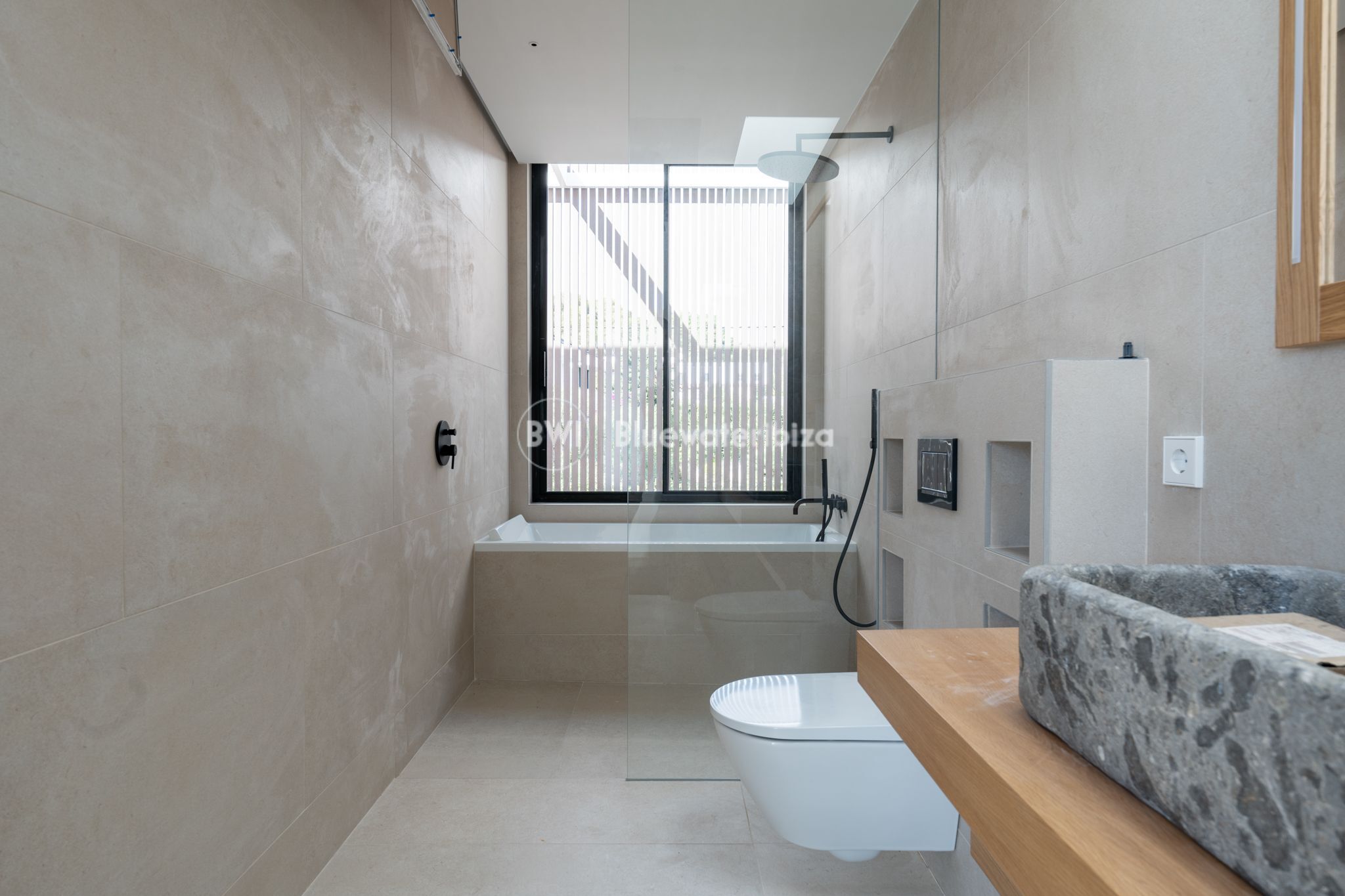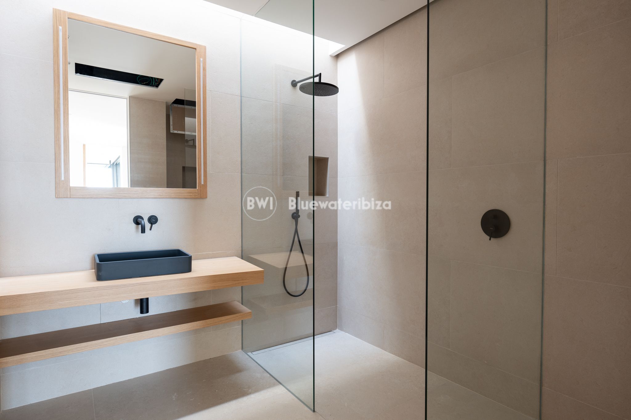 Only walking distance from Talamanca beach modern villa offer everything you can expect from top qualities materials end finish. The combination of wall to floor glass windows with the use of natural materials will ensure the atmosphere of every light flooded room and connect the inside spacious living space with the large outdoor terraces is the key to brining the joy of living to the next level, the house is close to all amenities ibiza .